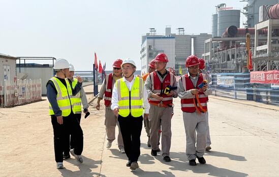 鄢來輝一行深入項目施工現(xiàn)場,對2號鍋爐、主廠房等區(qū)域進行全面細致檢查,并根據(jù)檢查情況提出工作要求。